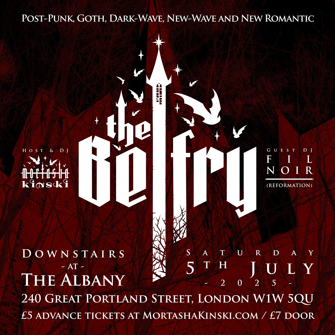 Welcome bats and fiends to The Belfry. Your host, Mortasha Kinski, and guest DJ Fil Noir will be spinning music with the flavours of post-punk, goth, dark-wave, new-wave, dark alternative and new romantic from the past 4 decades or so.